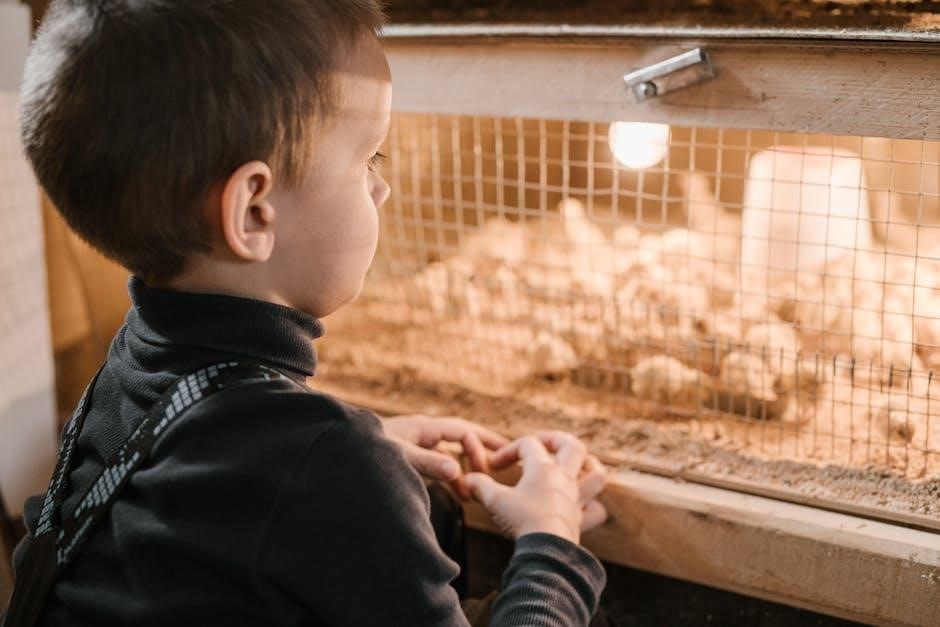 Consult your incubator’s PDF manual for detailed post-hatch guidance․ Allow chicks to dry completely within the incubator before transferring them to a brooder; Maintain a warm, draft-free environment with appropriate food and water․ The manual will specify optimal brooder temperatures and humidity levels for newly hatched chicks, ensuring their healthy development and minimizing stress․