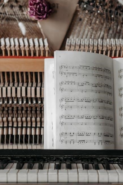 Chord symbols are a shorthand notation found in piano sheet music PDFs, representing specific harmonies. Understanding these symbols—like “Cmaj7” or “Am”—is crucial for accurate playing. They indicate the root note, chord quality (major, minor, diminished, augmented), and any added tones (7th, 9th, etc.).